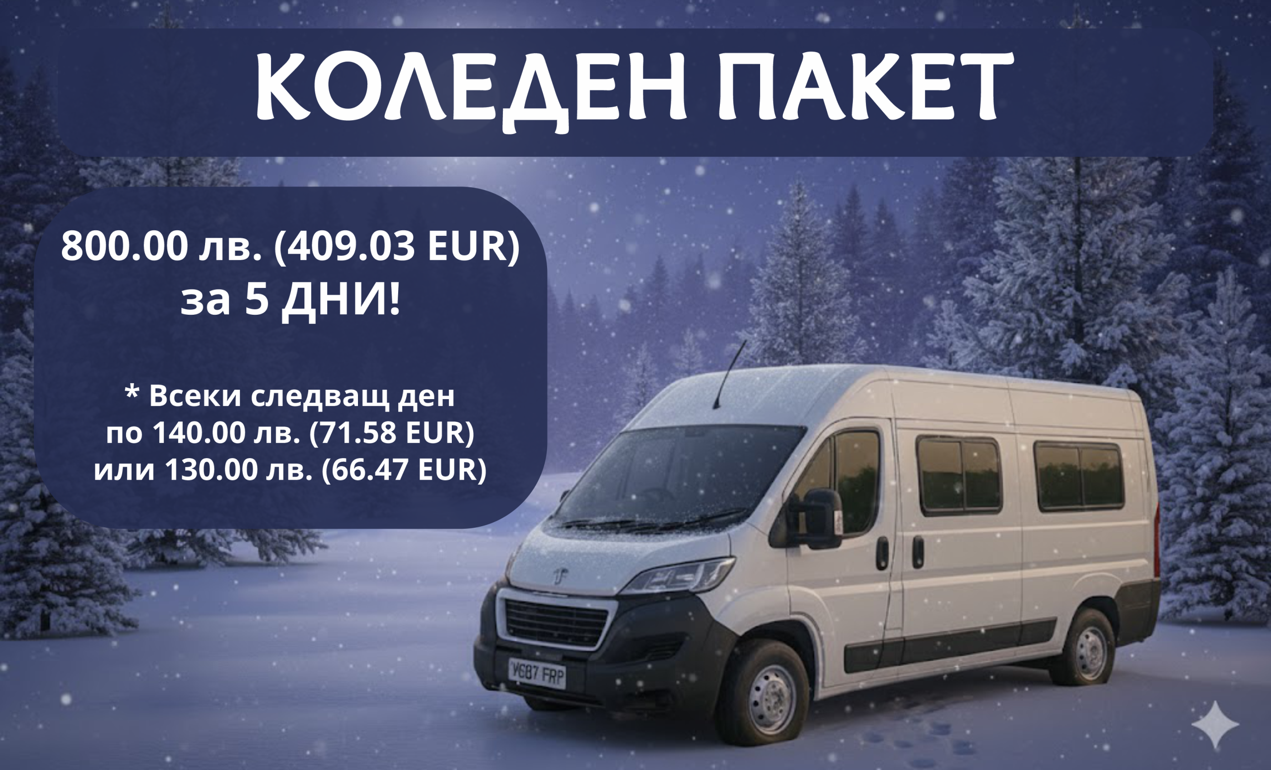 * Включени 300.00 км. на ден. Над този лимит се заплаща 0.20 лв. (0.10 EUR) на километър.